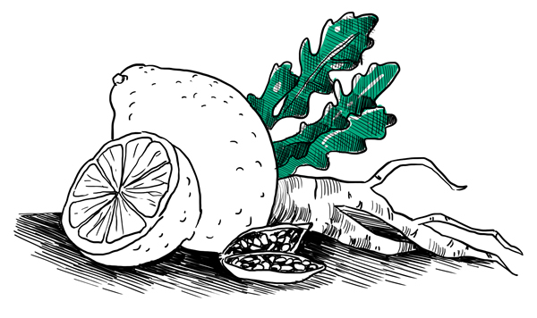Wiedziałaś, że rukola to naturalny energetyk? Swoje pobudzające właściwości rokietta siewna zawdzięcza związkom zwanym glukozynolanami, odpowiedzialnym za gorzki smak oraz intensywny zapach. Ich korzystne działanie zdrowotne objawia się m.in. hamowaniem nowotworów. Rukola dostarcza sporej ilości witamin A, B, C i K, a także jest bogata w wapń, magnez, potas i żelazo. Roślina ta pobudza działanie układu odpornościowego, serca i układu krwionośnego.Żeń szeń